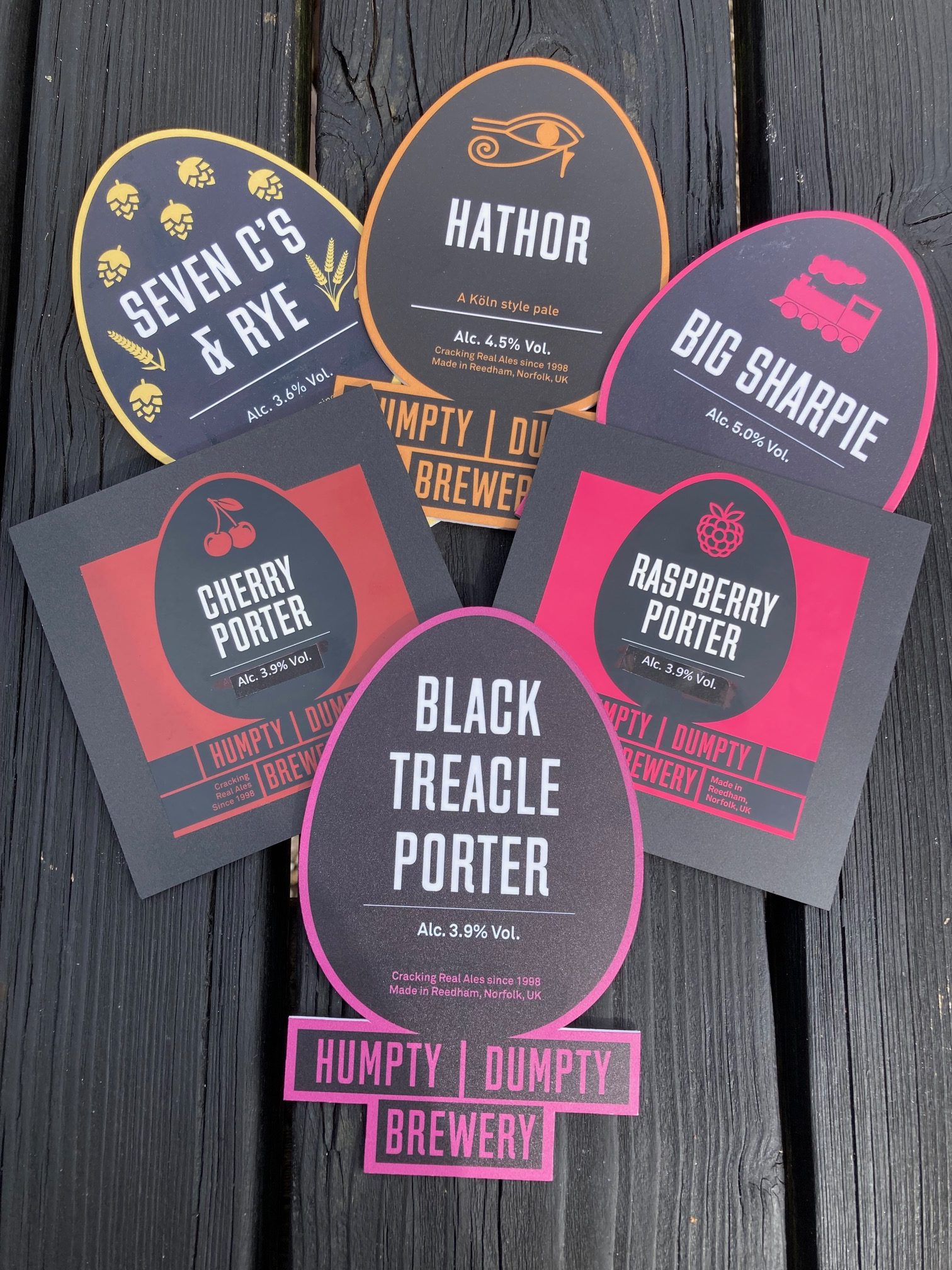 Little Sharpie, Swallowtail, Lemon & Ginger, Branchline Bitter, Breydon Bitter, *new* East Anglian Pale Ale, *new* Hathor, Farrier, Black Beauty, Cheltenham Flyer, Norfolk Nectar, Gold Rush, Golden Gorse, and our Easter Specials Good Egg & Bad Egg. We also still have some of our Christmas Crackling, 25 Barleywine & Festbier on end of season special offer!